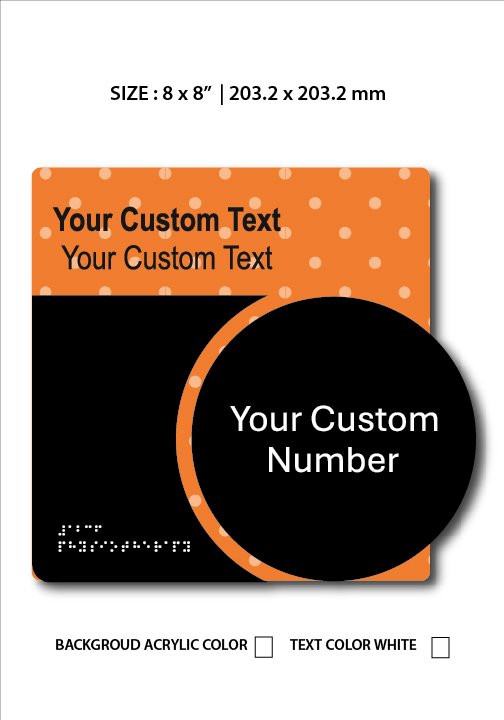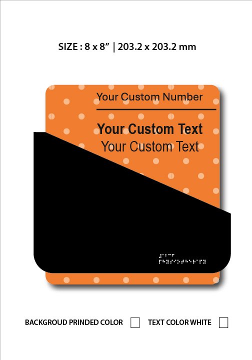 Shipping calculated at checkout| Size Braille Signs | 6 x 9 '' | 152.4 x 228.6 mm, 8 x 8 '' | 203.2 x 203.2 mm |